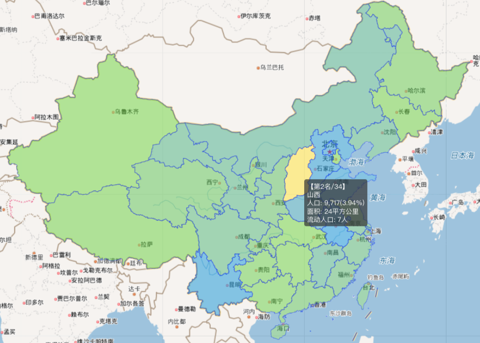 在区域色彩层中除了可以展示颜色映射数据,还可以在 Tooltip 悬浮窗中展示一些附加数据: