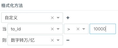 to_id在>100000时选数字转万/亿方法等。 - 如果您添加了多个方法,Sugar会按从上到下进行优先级排序,满足了更上的条件,则会按更上的格式化方法进行格式化。