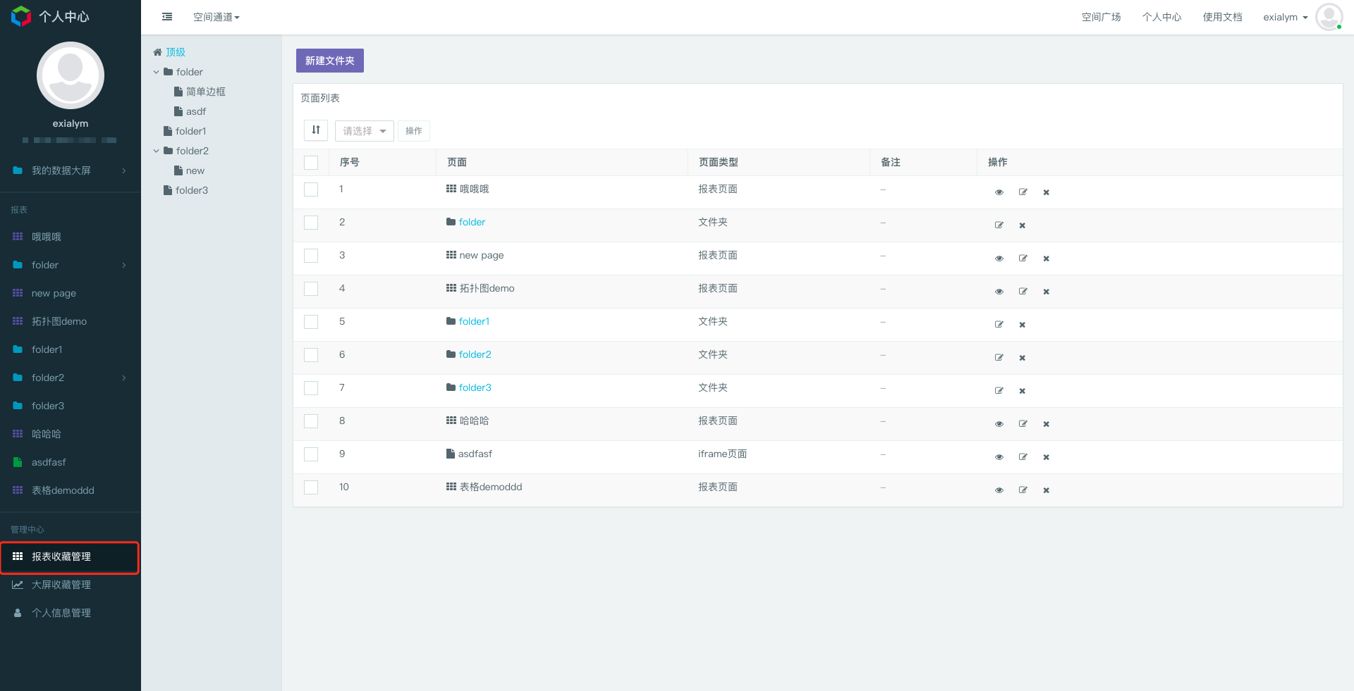 报表收藏管理主要是对个人中心中收藏报表的文件夹结构进行管理,这里的设置只会影响到个人中心,不会影响到报表本身。